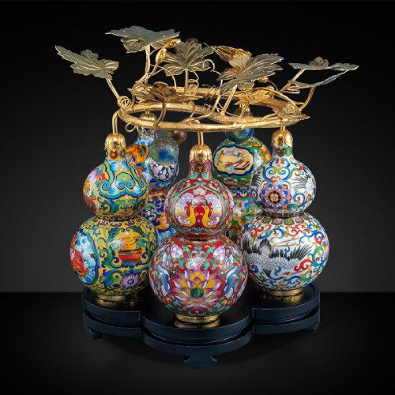 中藝盛嘉 中藝堂收藏品 张同禄 刘永森 霍铁辉 钟连盛 戴嘉林 景泰蓝五大家《五福泰瓶》摆件 $7114.3 |