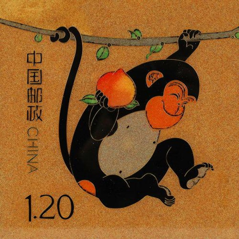 Zhongyi Shengjia Zhongyi Tang Collectibles: Mi Zhenxiong, Cloisonn é, Bingshen Nian Monkey Ticket, Cloisonn é Enamel Painting