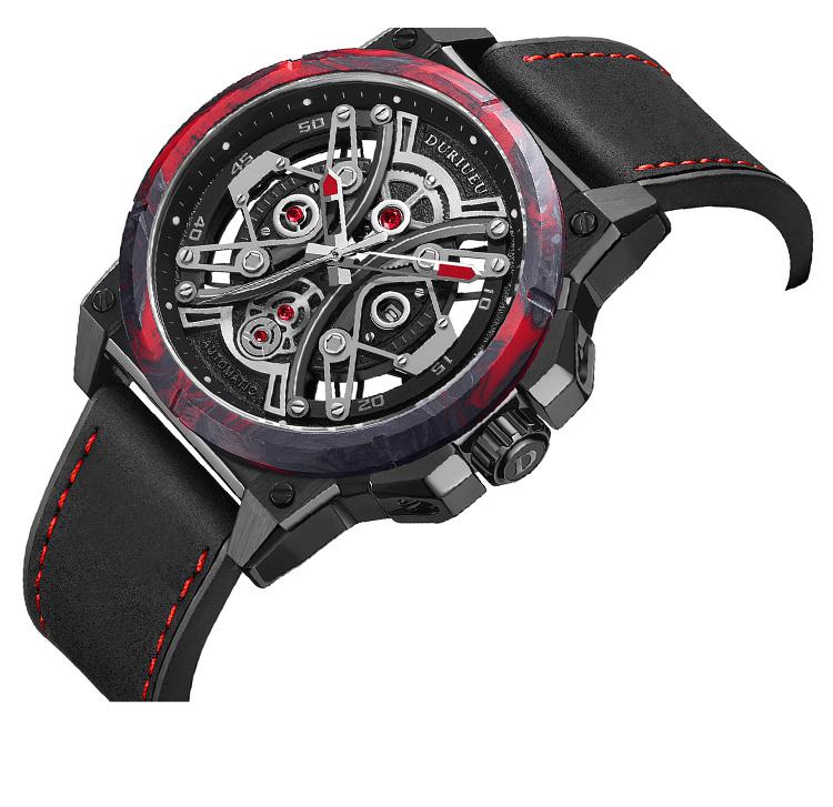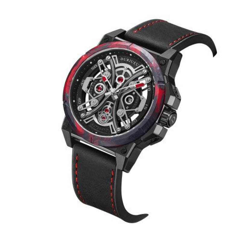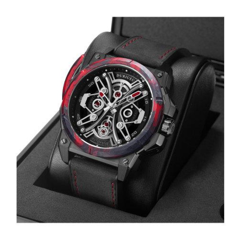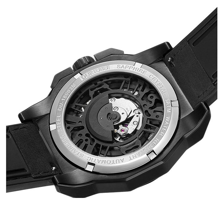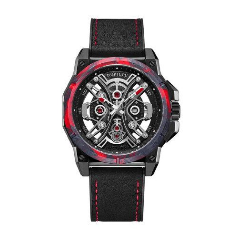 DURIUEU/杜里手表 进口机芯自动机械表商务时尚潮流男士腕表 黑皮带红线黑盘红钻 DU-18003MEXEEEH1 全球联保