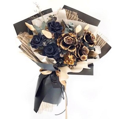 FlowerFun/FlowerFun Dried Flowers Eternal Life Flower Bundle Black Gold Birthday Anniversary Festival Bouquet $95.3 |