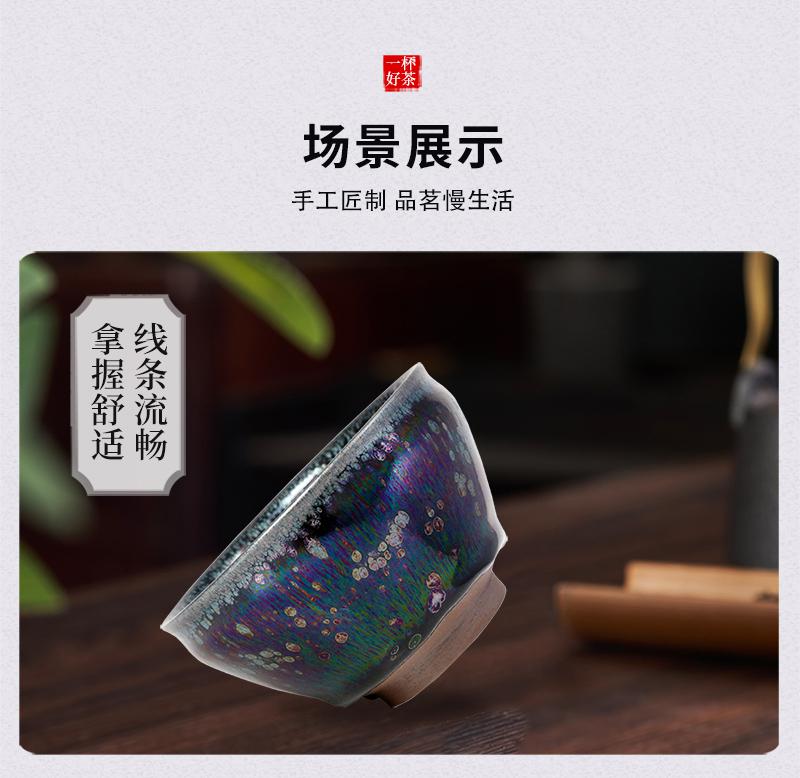 Zhongyi Shengjia Jianyang Jianzhan Colorful Sparkling Master Cup Pure Handmade Mineral Iron Body Ceramic Tea Cup Tasting Tea Cup