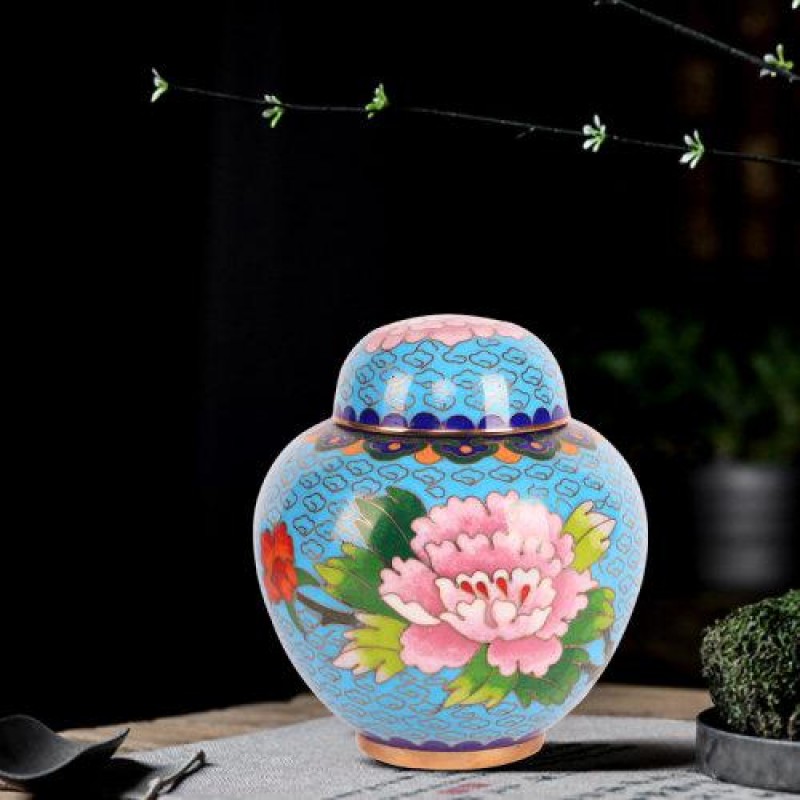 Zhongyi Shengjia Jingtai Blue Tea Jar Tea Set Decoration Copper Body Cloisonn é Enamel Business Gift Gift Giving