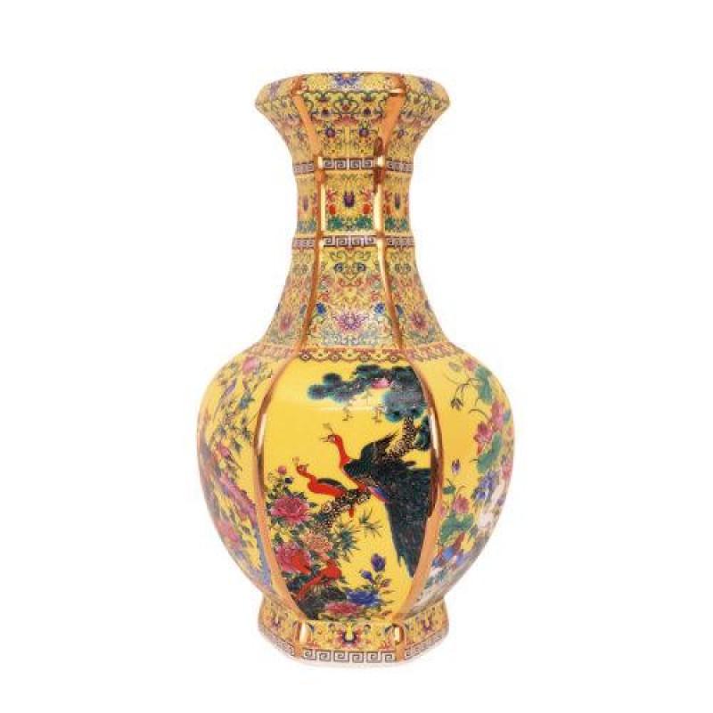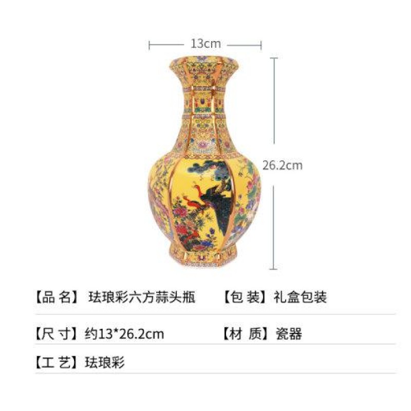 Zhongyi Shengjia Jingdezhen porcelain vase enamel hexagonal garlic bottle antique hand-painted living room decoration home decor