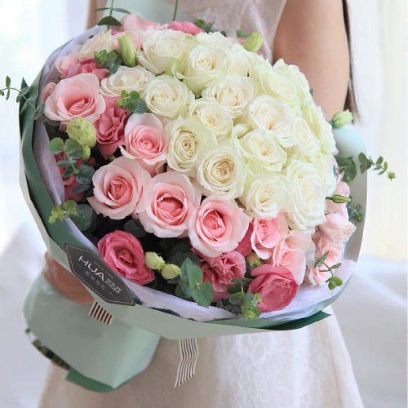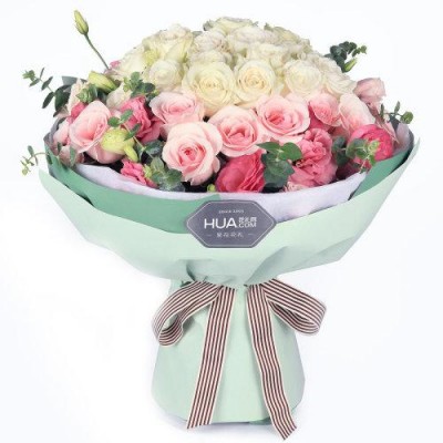 花礼/甜美公主/白玫瑰22枝,粉佳人粉玫瑰14枝,粉色桔梗5枝/七夕情人节礼物鲜花/当日达 $60.0 |