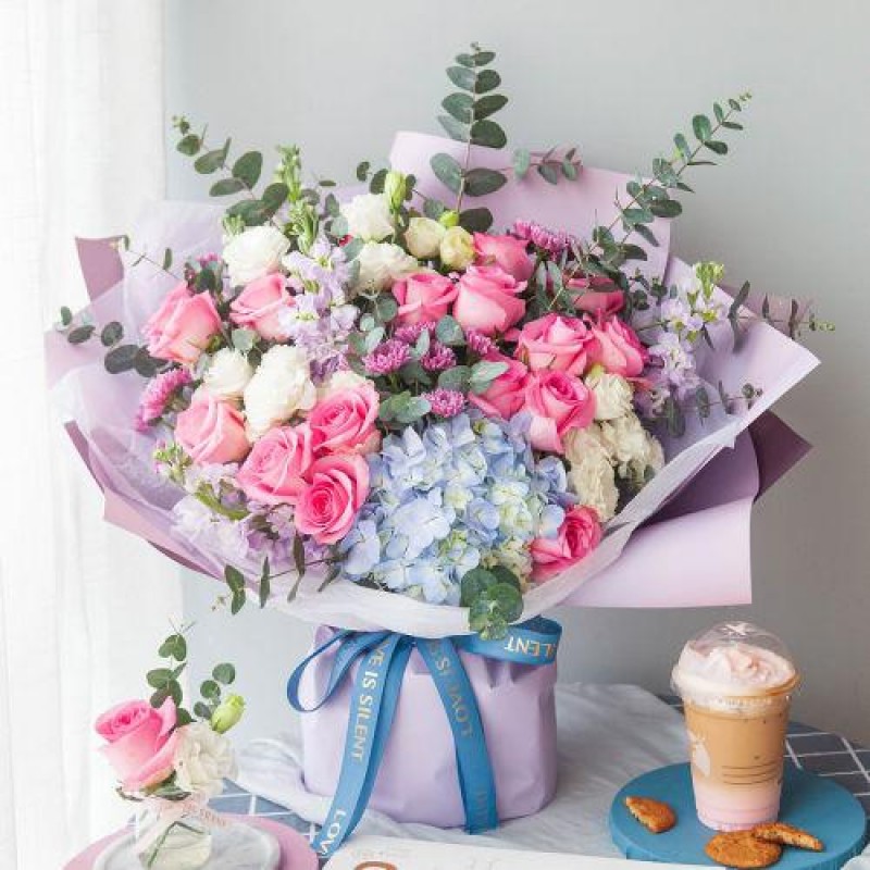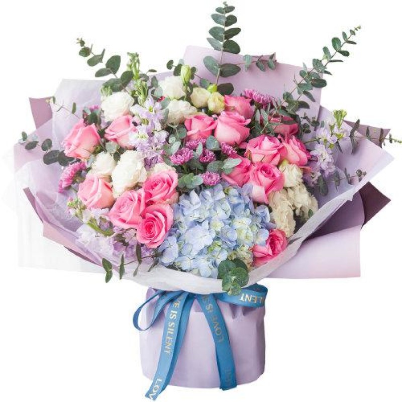 花礼/韩式系列/青春有你/苏醒玫瑰16枝、洋桔梗、绣球/七夕情人节礼物鲜花/当日达