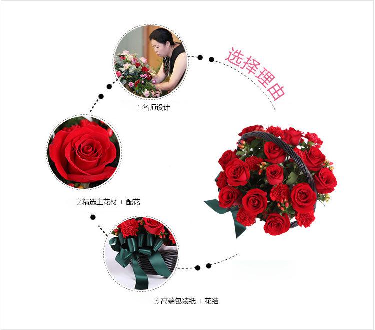 花礼/爱的思念/手提式花篮红玫瑰12枝/七夕情人节礼物鲜花/当日达
