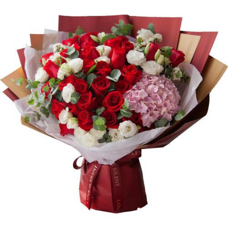 花礼/韩式系列/亲密爱人/卡罗拉玫瑰33枝,配桔梗、绣球/七夕情人节礼物鲜花/当日达 $71.6 |