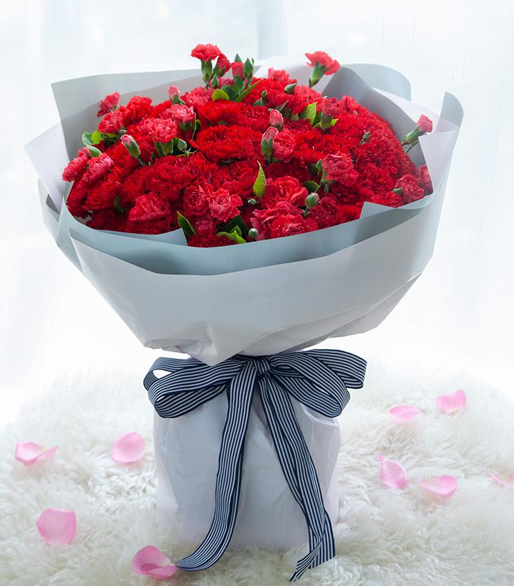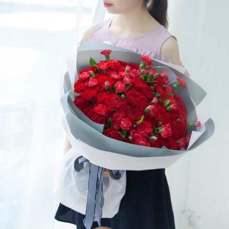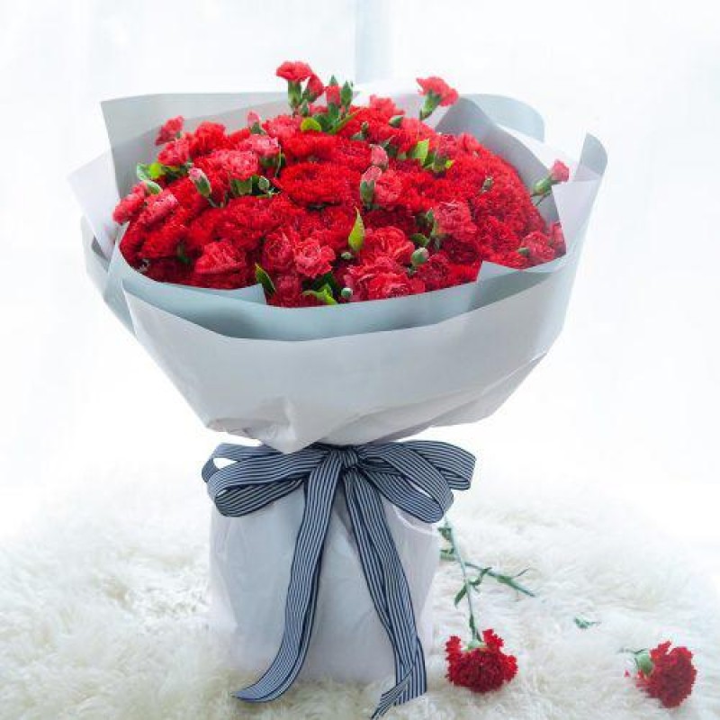 花礼/健康长久/红色康乃馨99枝、多头红色康乃馨1扎/七夕情人节礼物鲜花/当日达