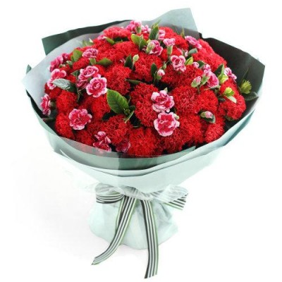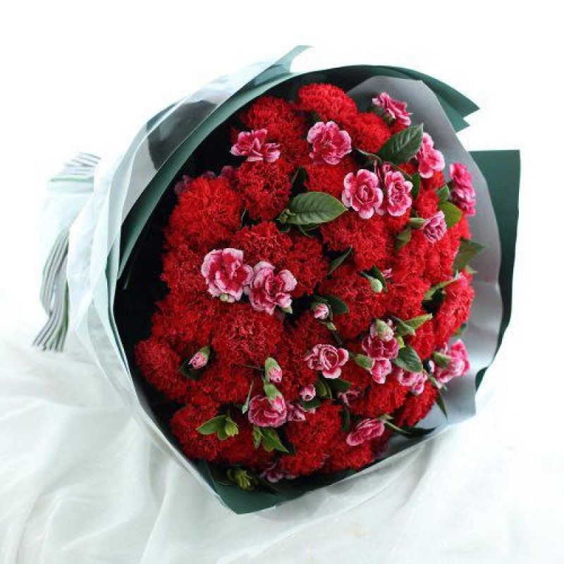 花礼/幸福万年长/红色康乃馨66枝,白边紫色多头康乃馨15枝/七夕情人节礼物鲜花/当日达 $56.6 |