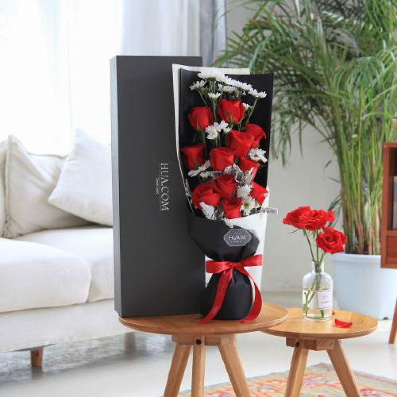 花礼/浪漫告白/卡罗拉红玫瑰11枝、白色小雏菊4枝/七夕情人节礼物鲜花送人/当日达 $40.0 |