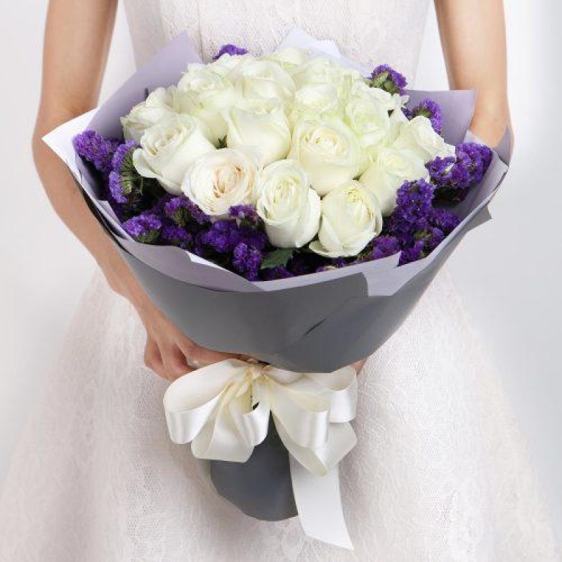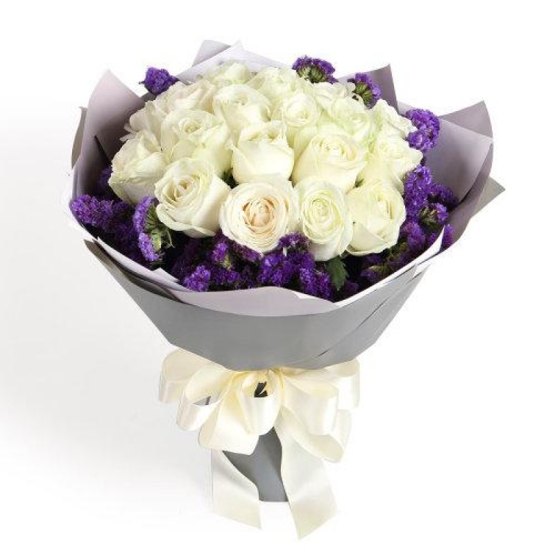 花礼/如初/19枝白玫瑰,紫色勿忘我5枝/七夕情人节礼物鲜花送人/当日达 $33.4 |