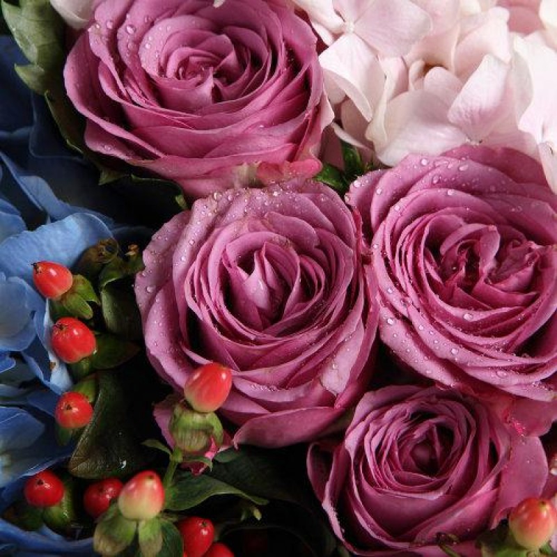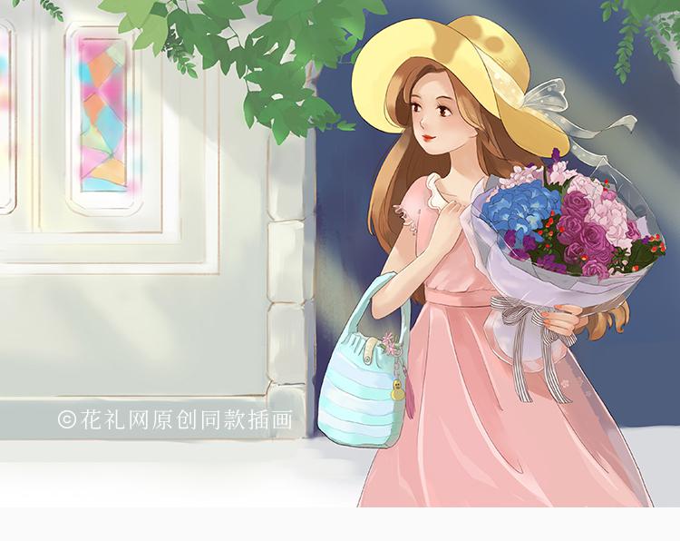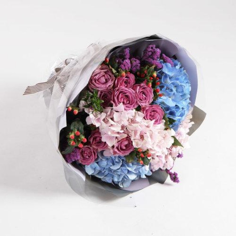 花礼/花仙子/蓝绣球2枝、粉绣球,紫玫瑰/七夕情人节礼物鲜花送人/当日达