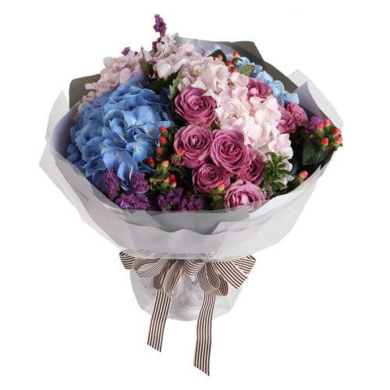 花礼/花仙子/蓝绣球2枝、粉绣球,紫玫瑰/七夕情人节礼物鲜花送人/当日达 $53.4 |
