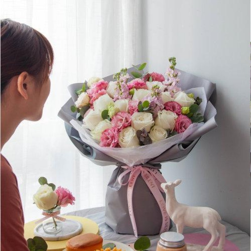 花礼/韩式系列/佳期如梦/白雪山玫瑰13枝、洋桔梗、尤加利、紫罗兰//七夕情人节礼物鲜花送人/当日达 $47.1 |