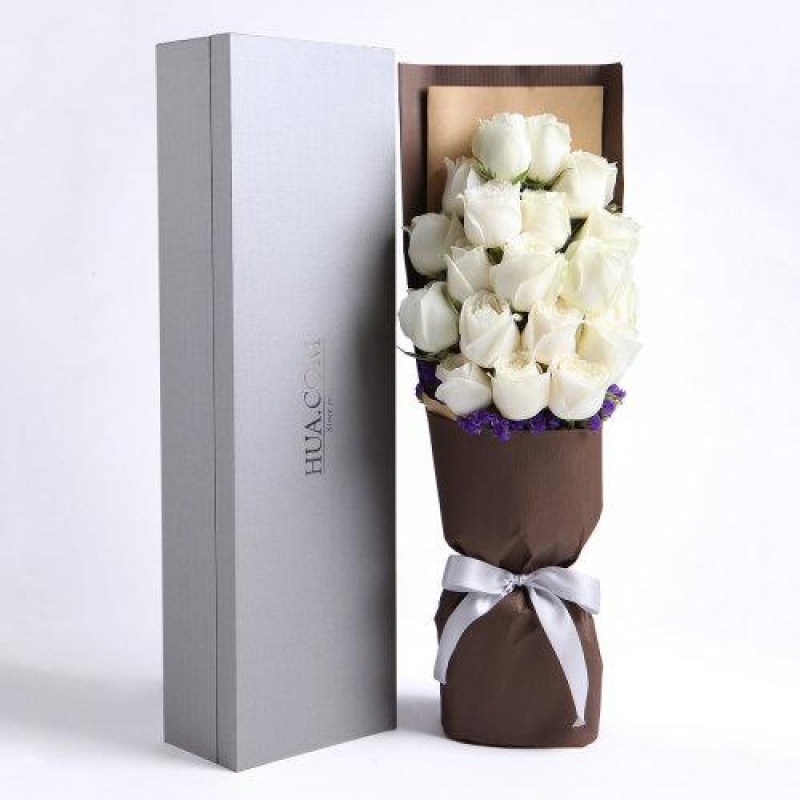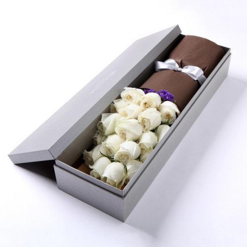 花礼/一如初见/精品玫瑰礼盒:白玫瑰19枝/鲜花/七夕情人节礼物鲜花/当日达