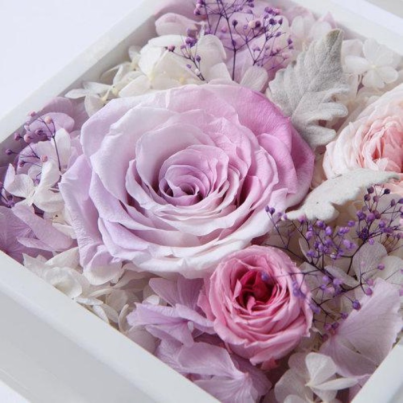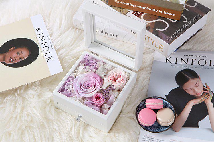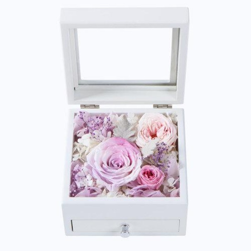 FLOWERSONG/小仙女/永生花首饰盒-日本进口粉紫色大地永生玫瑰,奥斯丁永生玫瑰花