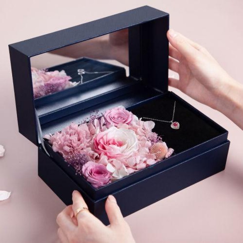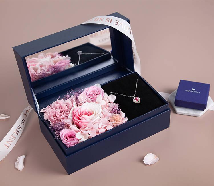 花漾年华-永生花玫瑰花+施华洛世奇ONE项链浪漫心形项链
