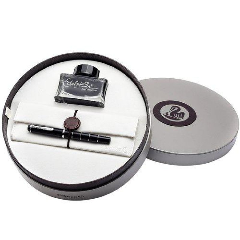 Pelikan Traditional Series M215 Black Silver Ring Ink Pen Piston Ink Pen Ink Set Gift Box