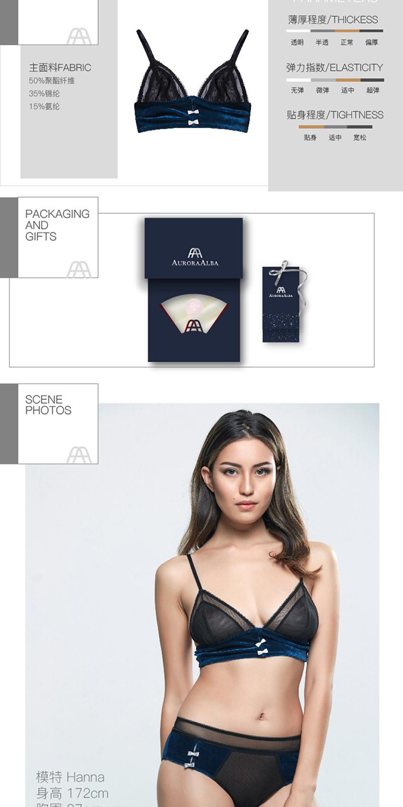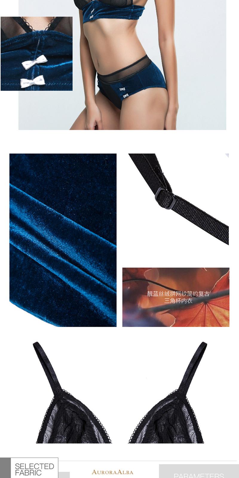 【 LayoutWomenwear 】 AURORAALBA/AuroraAlba Beautiful Blue Velvet Mesh Simple Retro Triangle Cup Underwear