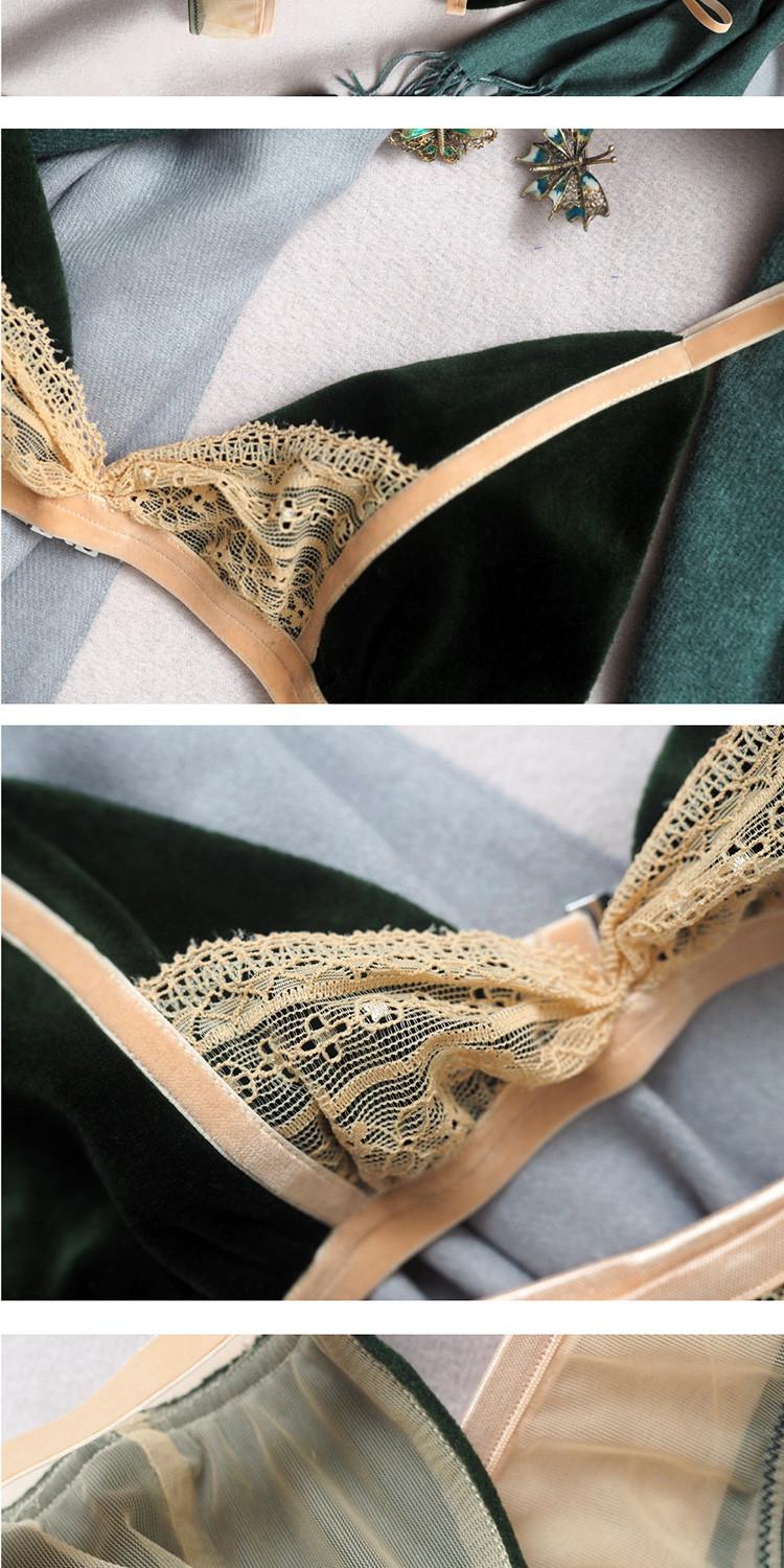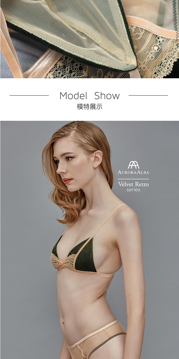 【DesignerWomenwear】AURORAALBA/AuroraAlba女士内衣草绿天鹅绒拼复古裸橘色植物花朵蕾丝抽褶性感网纱三角杯内衣