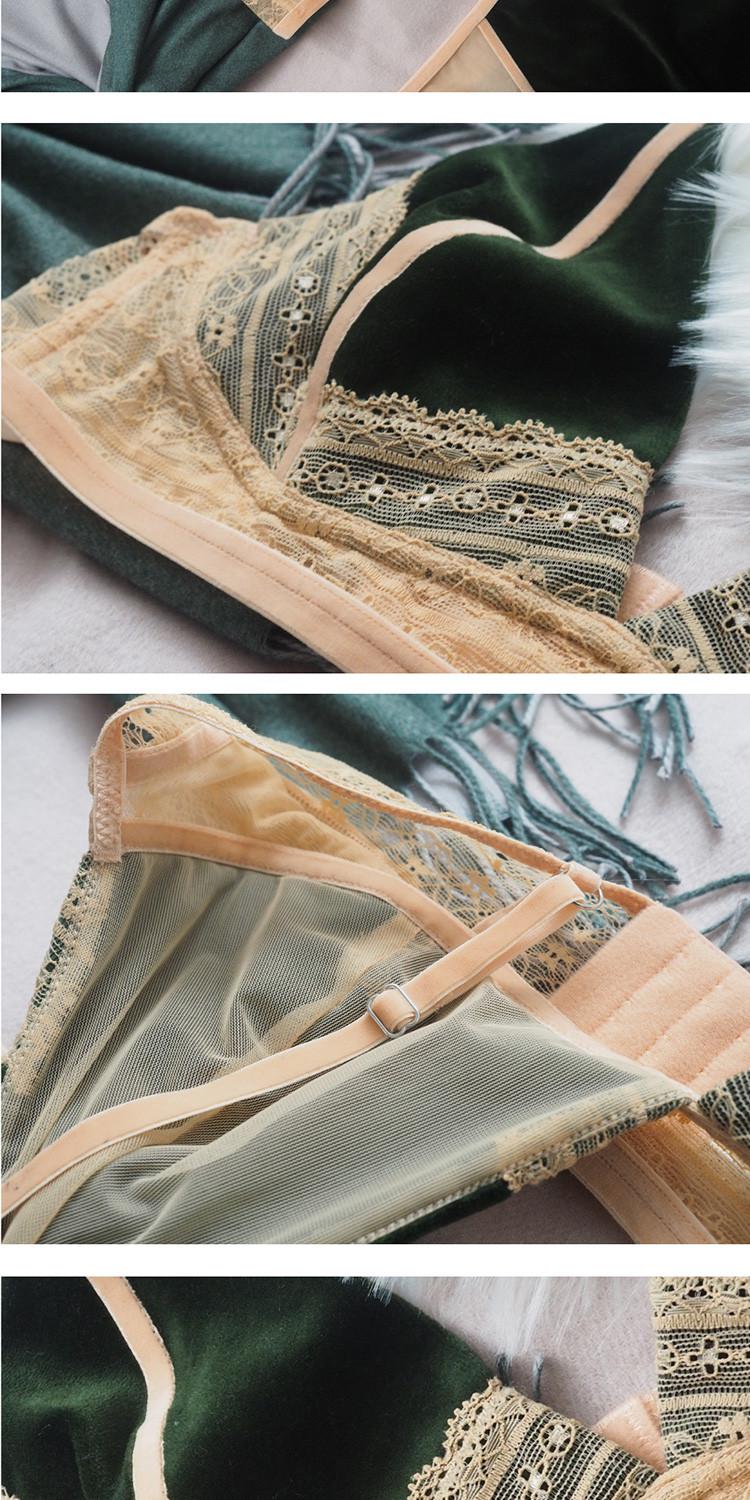 【 LayoutWomenwear 】 AURORAALBA/AuroraAlba Grass Green Velvet with Retro Bare Orange Plant Flower Lace Girl Feel Soft Cup Underwear