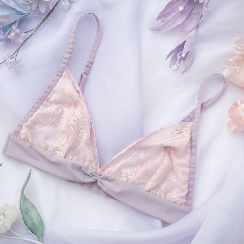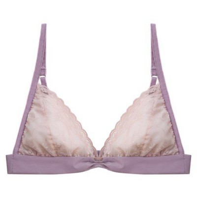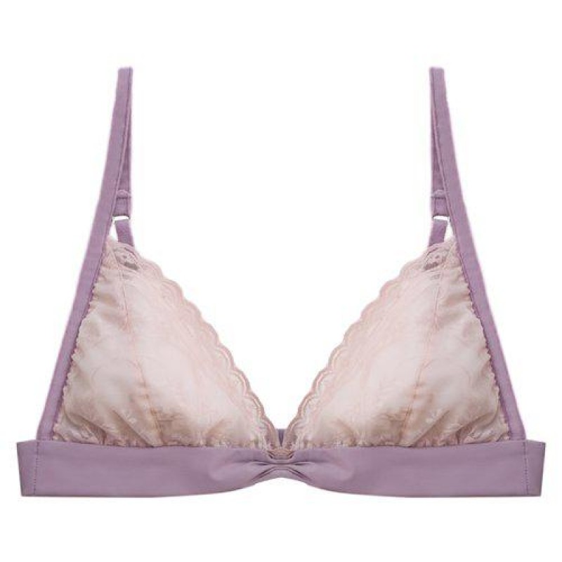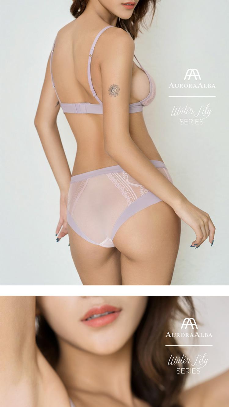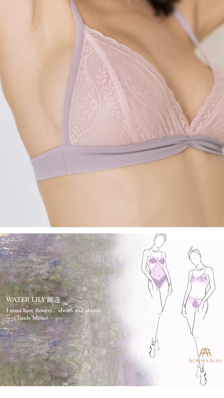 【DesignerWomenwear】AURORAALBA/AuroraAlba2019夏季WATER LILY睡莲-丁香紫随型裁拼接藕粉色蕾丝3/4杯内衣