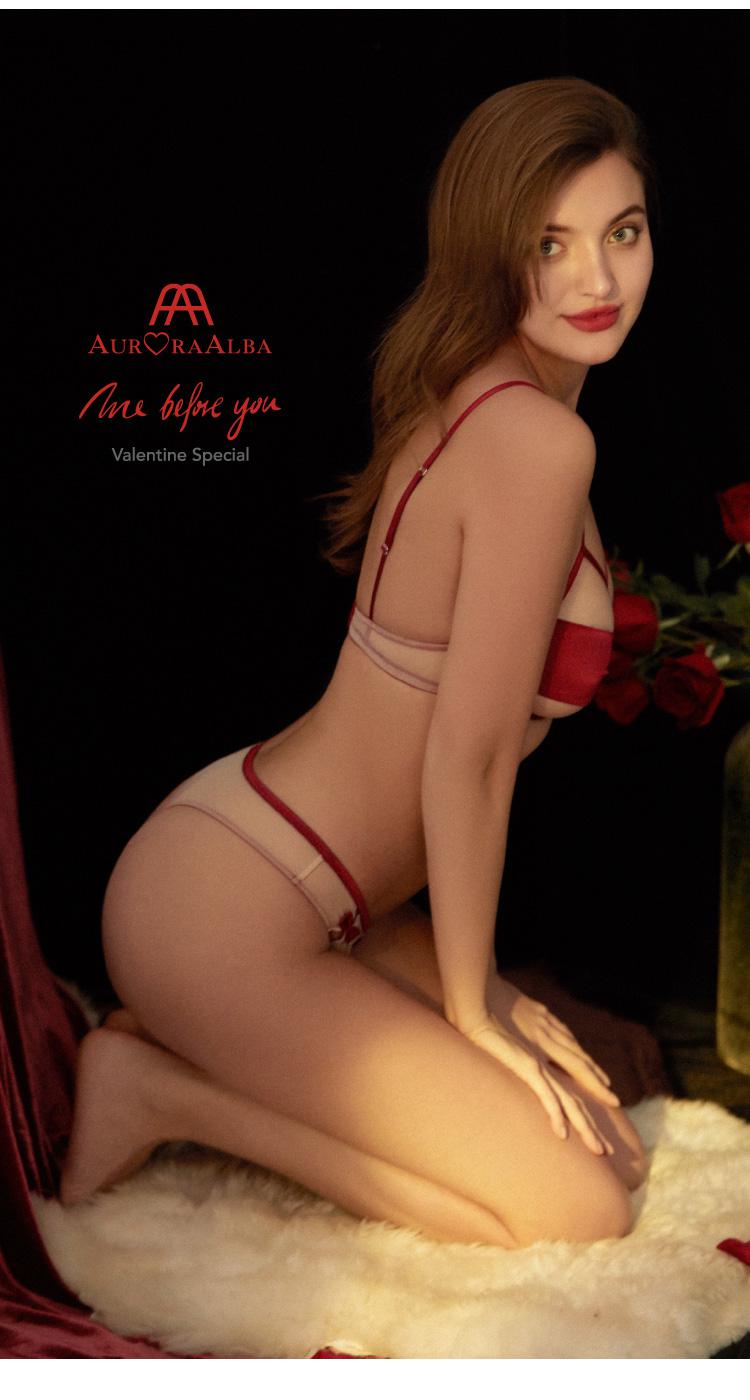 【DesignerWomenwear】AURORAALBA/AuroraAlba情人节限定款宝石红缎面色丁蝴蝶结镂空3/4杯内衣(预售14天)
