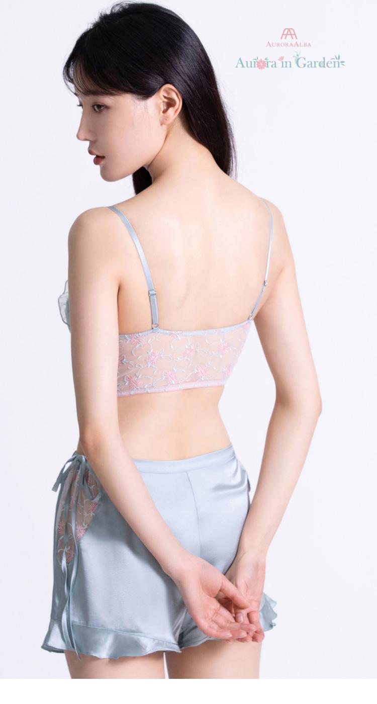 AURORAALBA/AuroraAlba in Garden Pink and Blue Daisy Embroidered Lace Retro Steel Rim Underwear Tank Top