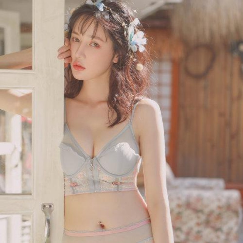AURORAALBA/AuroraAlba in Garden Pink and Blue Daisy Embroidered Lace Retro Steel Rim Underwear Tank Top $36.4 |
