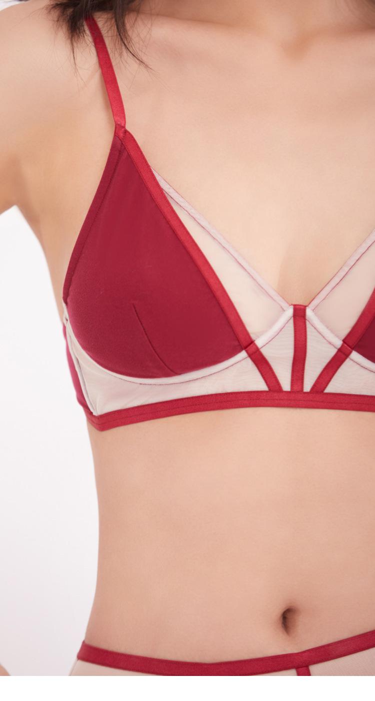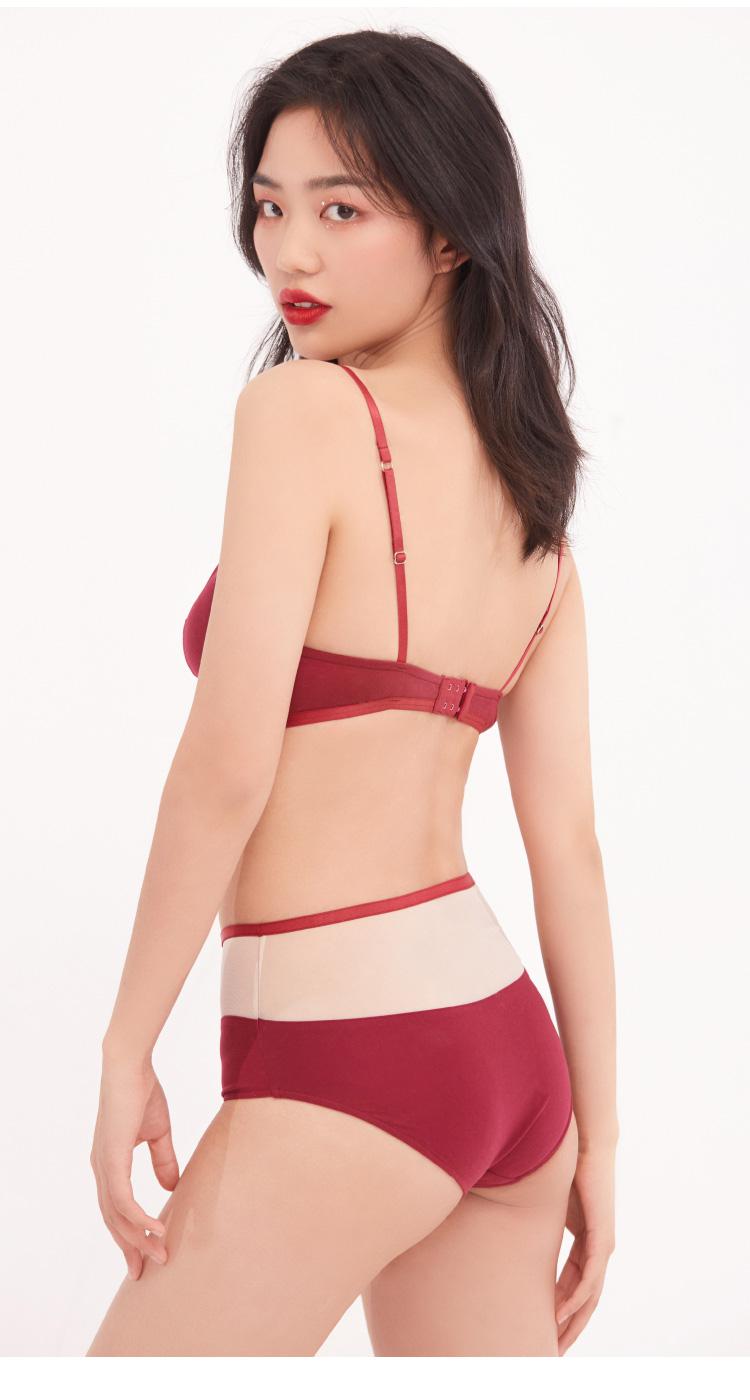 Aurora Alba新年开运红拼接粉卡其色全杯软杯无钢圈内衣
