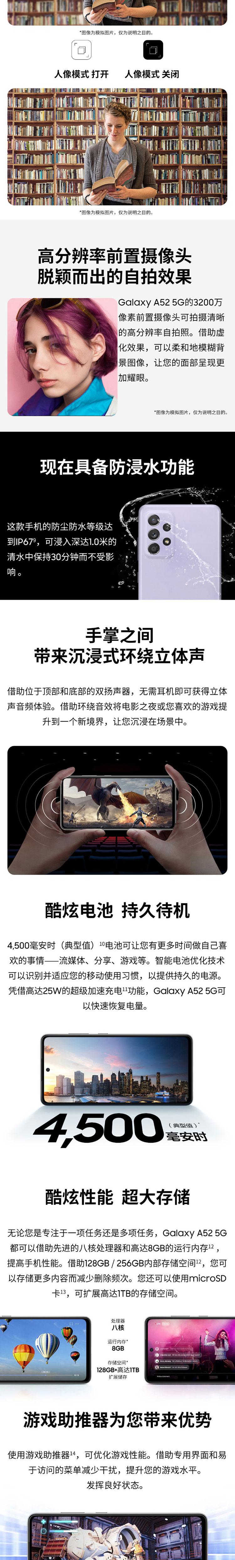 三星 Galaxy A52 5G(SM-A5260)双模5G 游戏手机 赠守护宝K230老年手机(颜色随机)