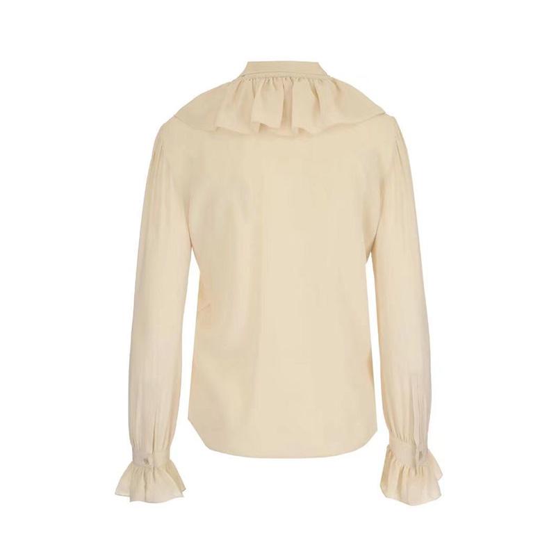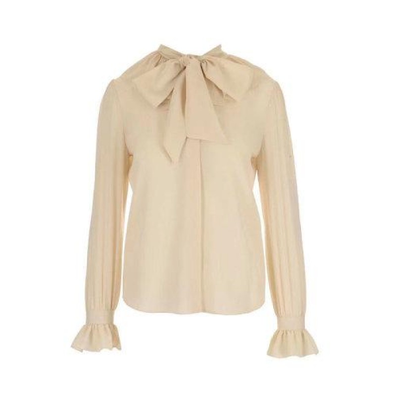Yves Saint Laurent women's beige pleated collar bow shirt 656561 Y100W 9042 $993.6 |