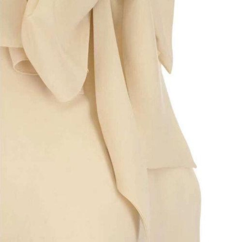 Yves Saint Laurent women's beige pleated collar bow shirt 656561 Y100W 9042