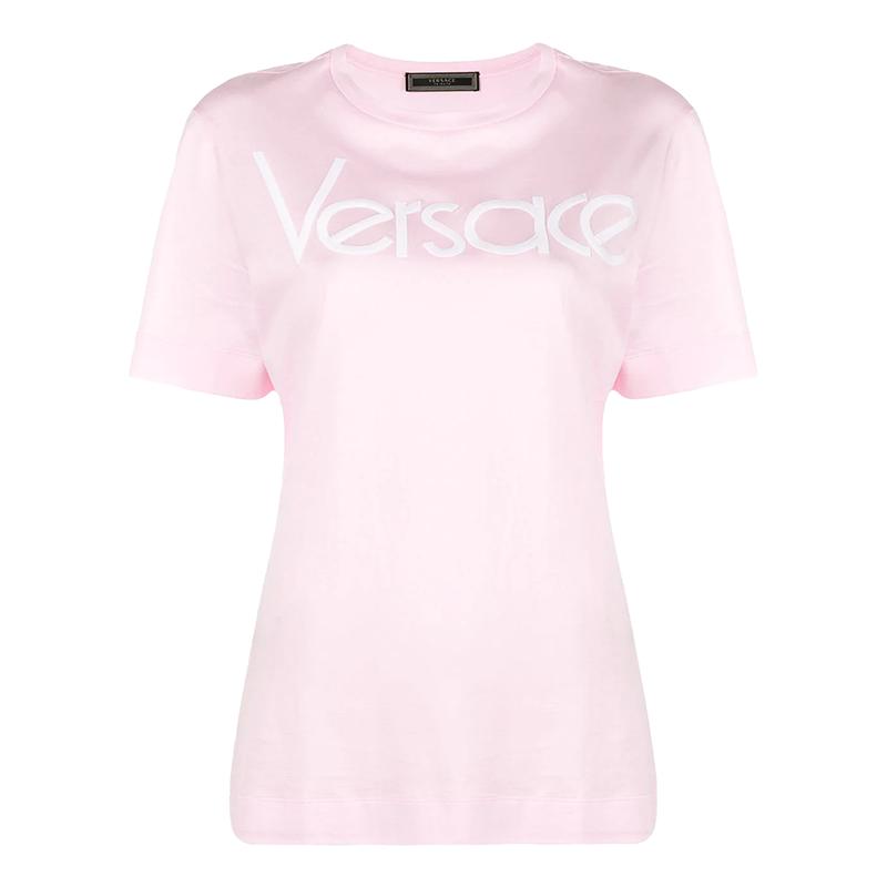 VERSACE/范思哲 樱花粉复古字母 女士短袖T恤 cb