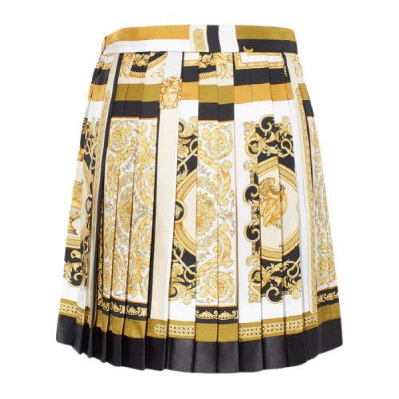 【预计两周左右发货】VERSACE 范思哲 女士 服装 21春夏 黄色拼色印花图案时尚丝质半裙 女士半身裙