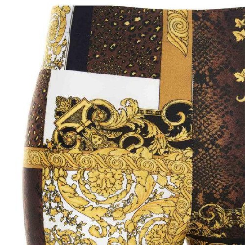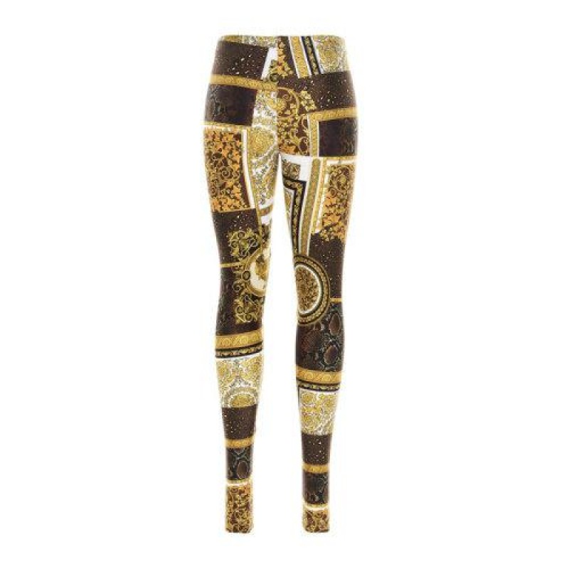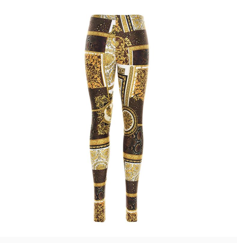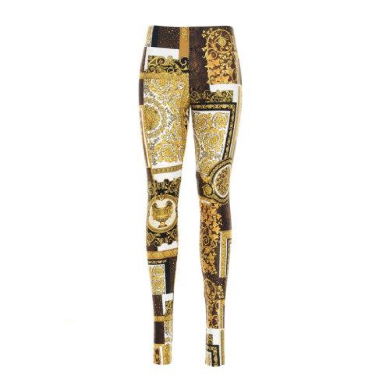 【预计两周左右发货】VERSACE 范思哲 女士 服装 21春夏 黄色时尚印花紧身打底裤休闲裤 女士休闲裤