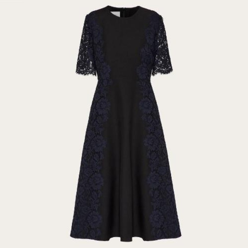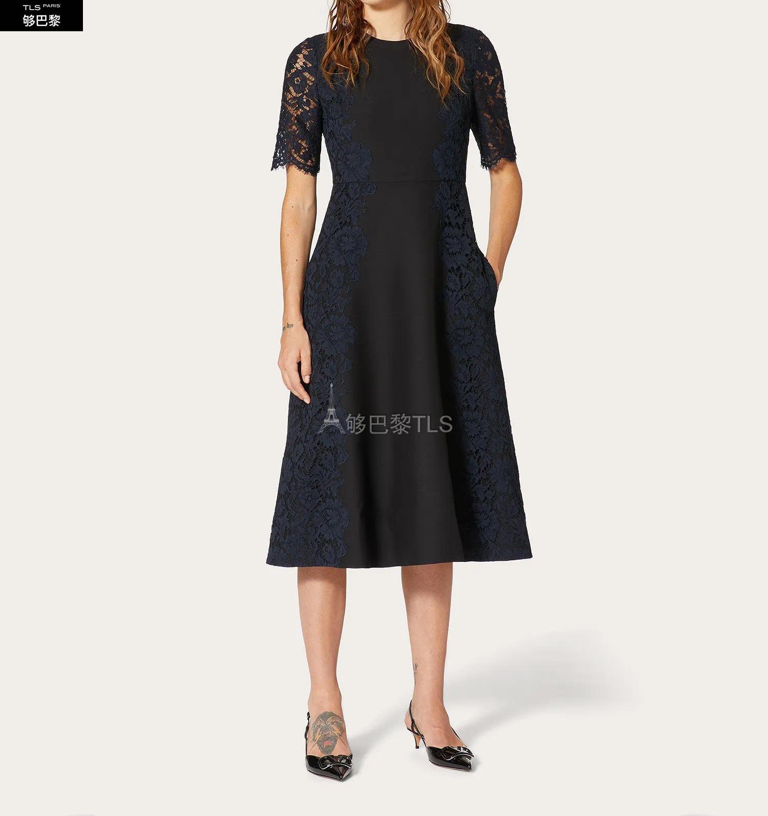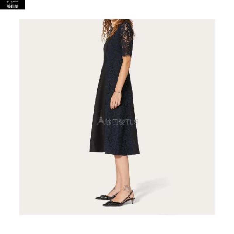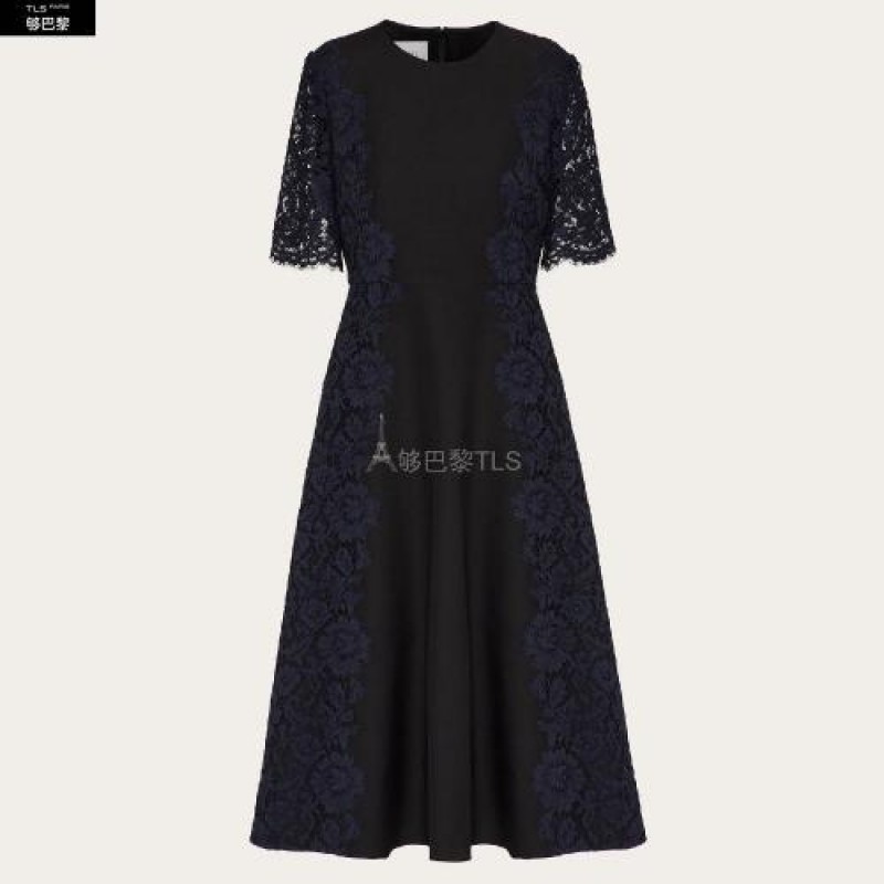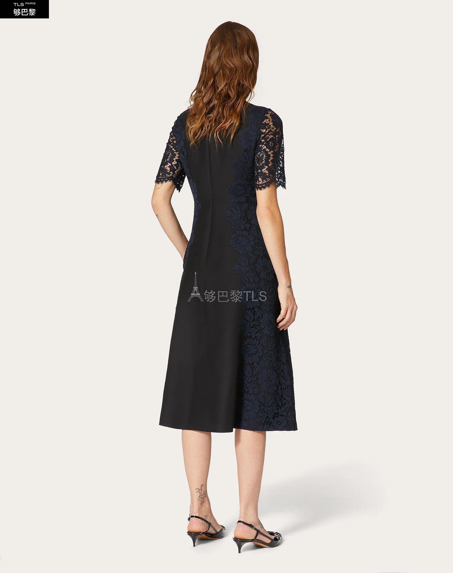 【包邮包税】 VALENTINO华伦天奴 21年春夏 女士 连衣裙 ROBE EN CREPE COUTURE ET GUIPURE UB3VATK5360N1N 预定商品1-3周发货
