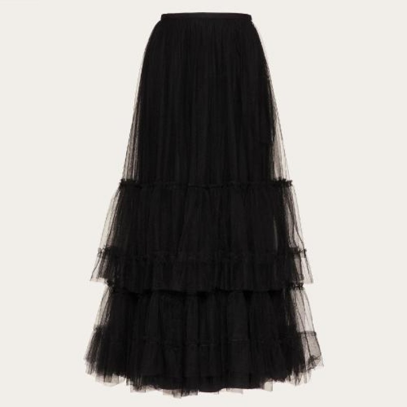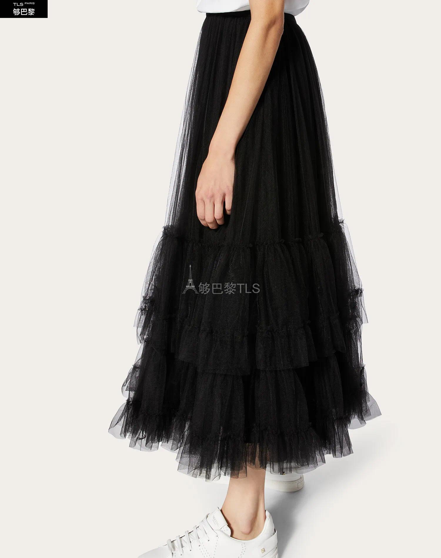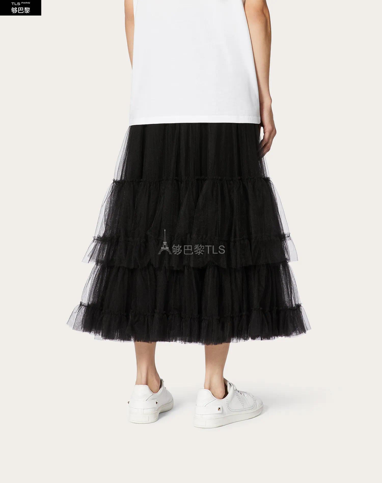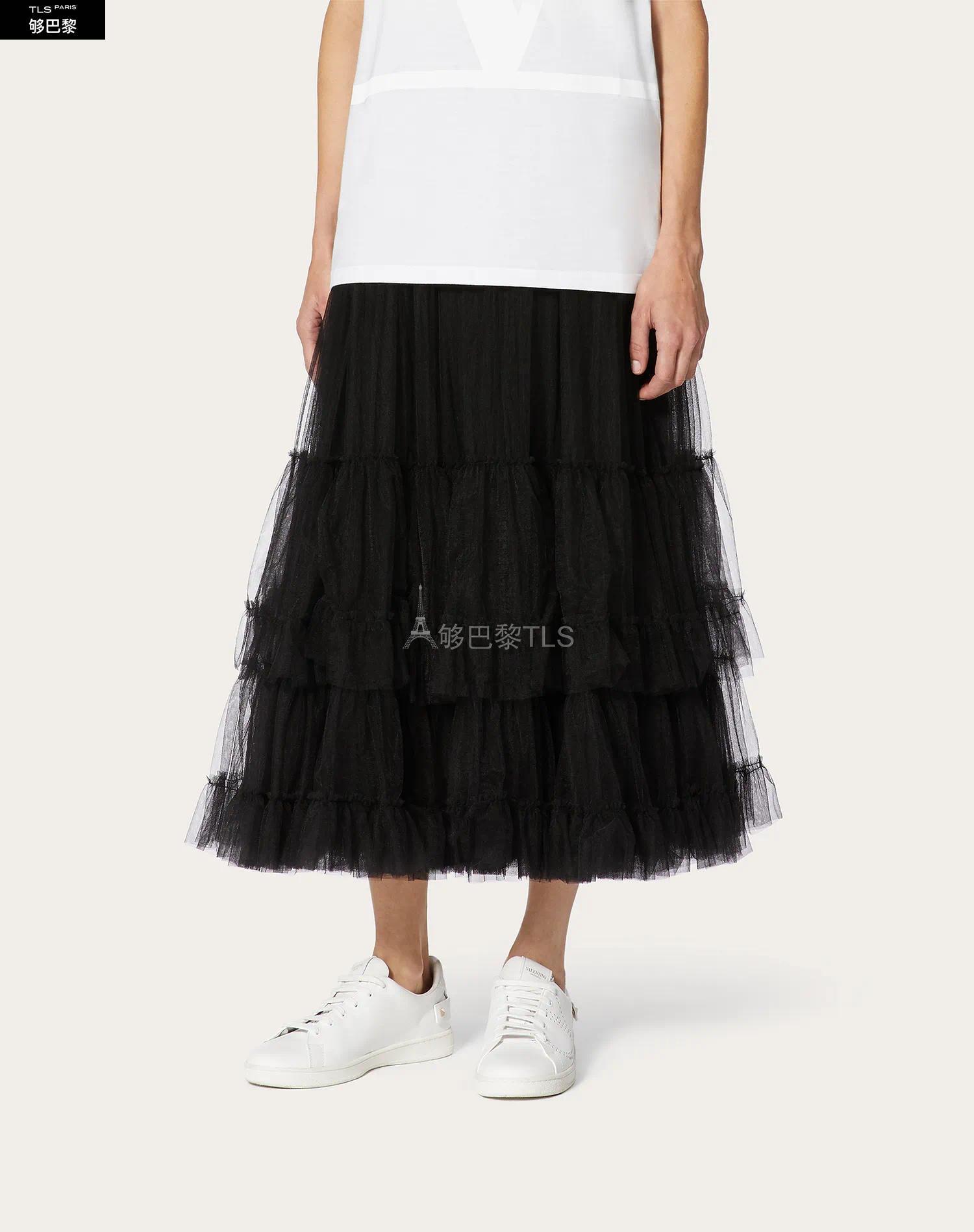 【包邮包税】 VALENTINO华伦天奴 21年春夏 女士 半身裙 荷叶边薄纱半裙 TB3RA5P04N80NO 预定商品1-3周发货